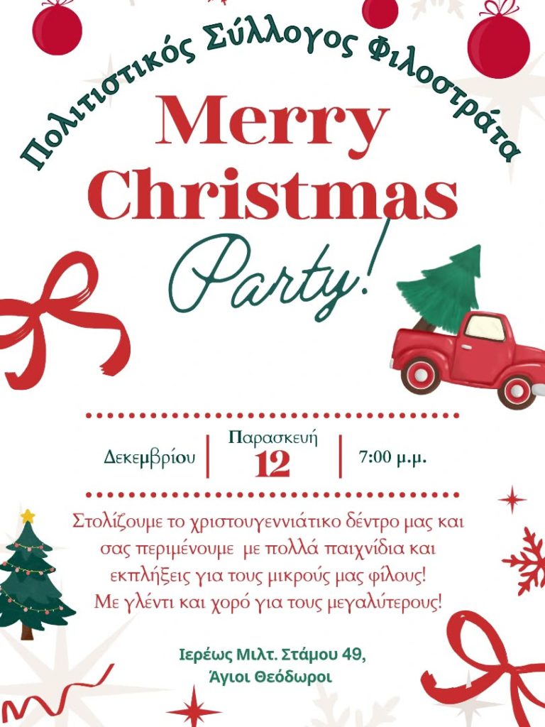 Την Παρασκευή 12 Δεκεμβρίου στις 7:00μ.μ. σας περιμένουμε στο χώρο του συλλόγου μας για να στολίσουμε το χριστουγεννιάτικο δέντρο όλοι μαζί!
