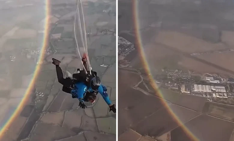 Μια εντυπωσιακή εικόνα κατέγραψαν αλεξιπτωτιστές στη Βρετανία κατά τη διάρκεια μιας ελεύθερης πτώσης, καθώς κατέγραψαν με την κάμερά τους ένα ουράνιο τόξο σε πλήρη κύκλο.