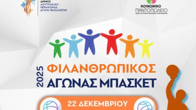 Σας προσκαλούμε στον αγώνα μπάσκετ φιλανθρωπικού χαρακτήρα για την ενίσχυση του Κοινωνικού Παντοπωλείου του Δήμου Λουτρακίου – Περαχώρας – Αγίων…