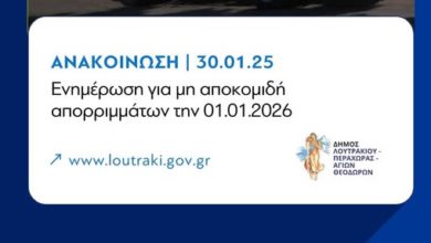 Ο Δήμος Λουτρακίου – Περαχώρας – Αγίων Θεοδώρων ενημερώνει τους δημότες ότι την Πέμπτη 1 Ιανουαρίου 2026 δεν θα πραγματοποιηθεί…