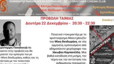 Προβολή ταινίας στην Κινηματογραφική Λέσχη Κορινθίας στους Αγίους Θεόδωρους