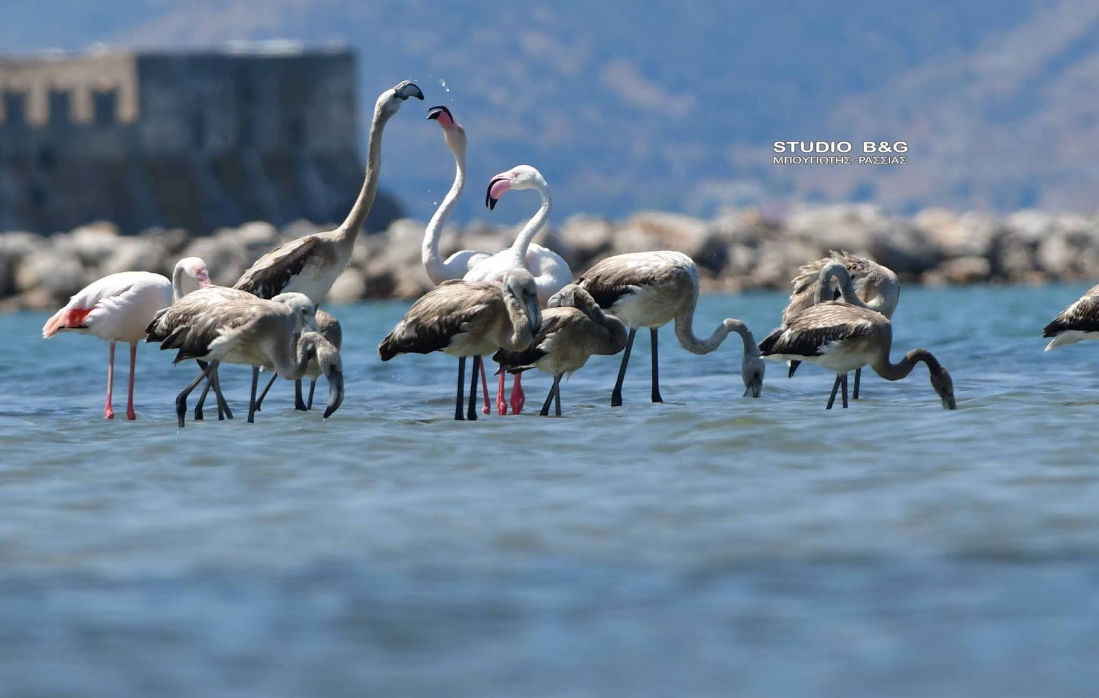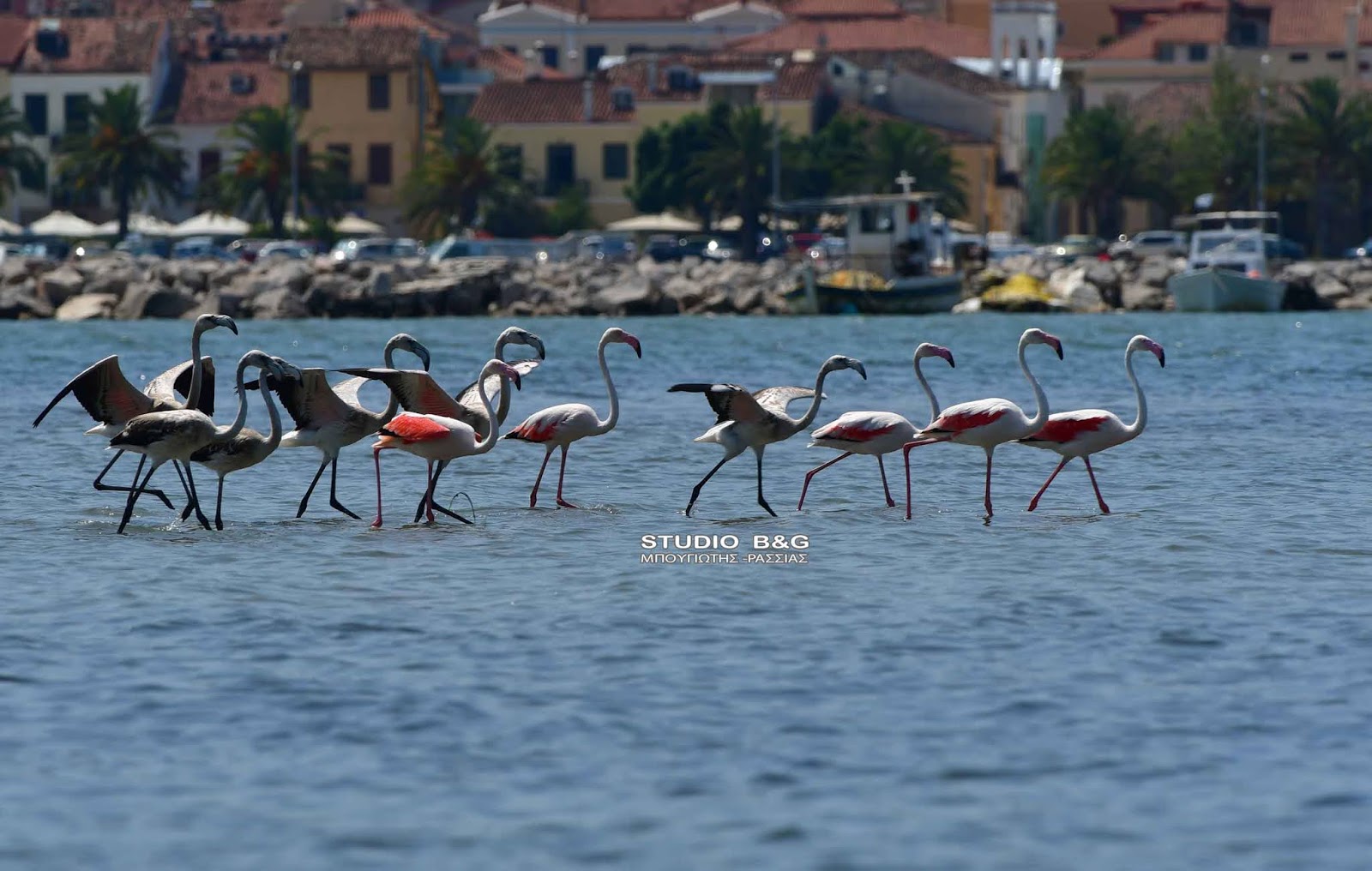 Εικόνες εξωτικής ομορφιάς από 50 φλαμίνγκο στο Ναύπλιο (εικόνες-βίντεο)