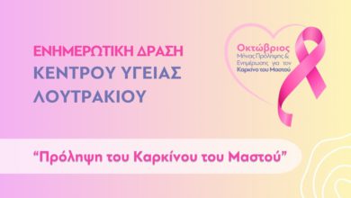 Ενημερωτική δράση Κέντρου Υγείας Λουτρακίου με θέμα «Πρόληψη του καρκίνου του μαστού»
