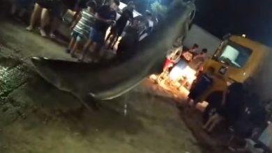 Προκειμένου να καταφέρουν να βγάλουν τον νεκρό καρχαρία από τη θάλασσα, στήθηκε ολόκληρη επιχείρηση με οχήματα 4X4 και έναν γερανό.…