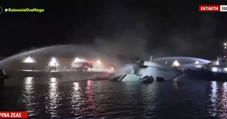 Φωτιά σε τέσσερα σκάφη στη Μαρίνα Ζέας: Βυθίστηκαν τα τρία (video)