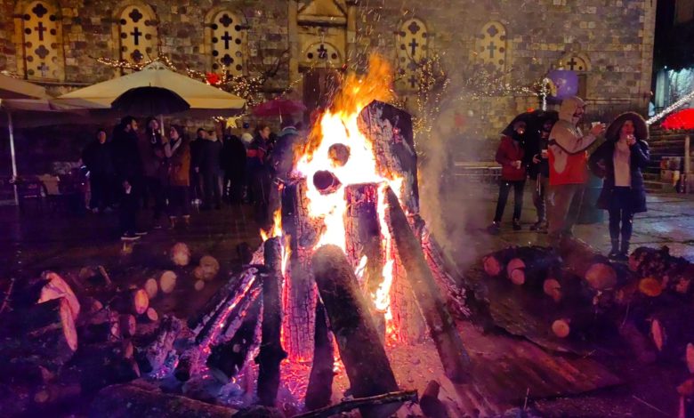 Στην κεντρική πλατεία άναψαν μεγάλη φωτιά και διασκέδασαν μέχρι τις πρώτες πρωινές ώρες με δωρεάν εδέσματα και άφθονο κρασί.