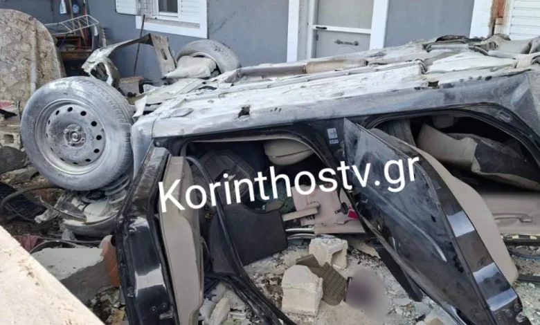 Κορινθία: Σοκαριστικό τροχαίο στα Εξαμίλια – Αυτοκίνητο κατέληξε σε σπίτι – Δύο σοβαρά τραυματίες (video)