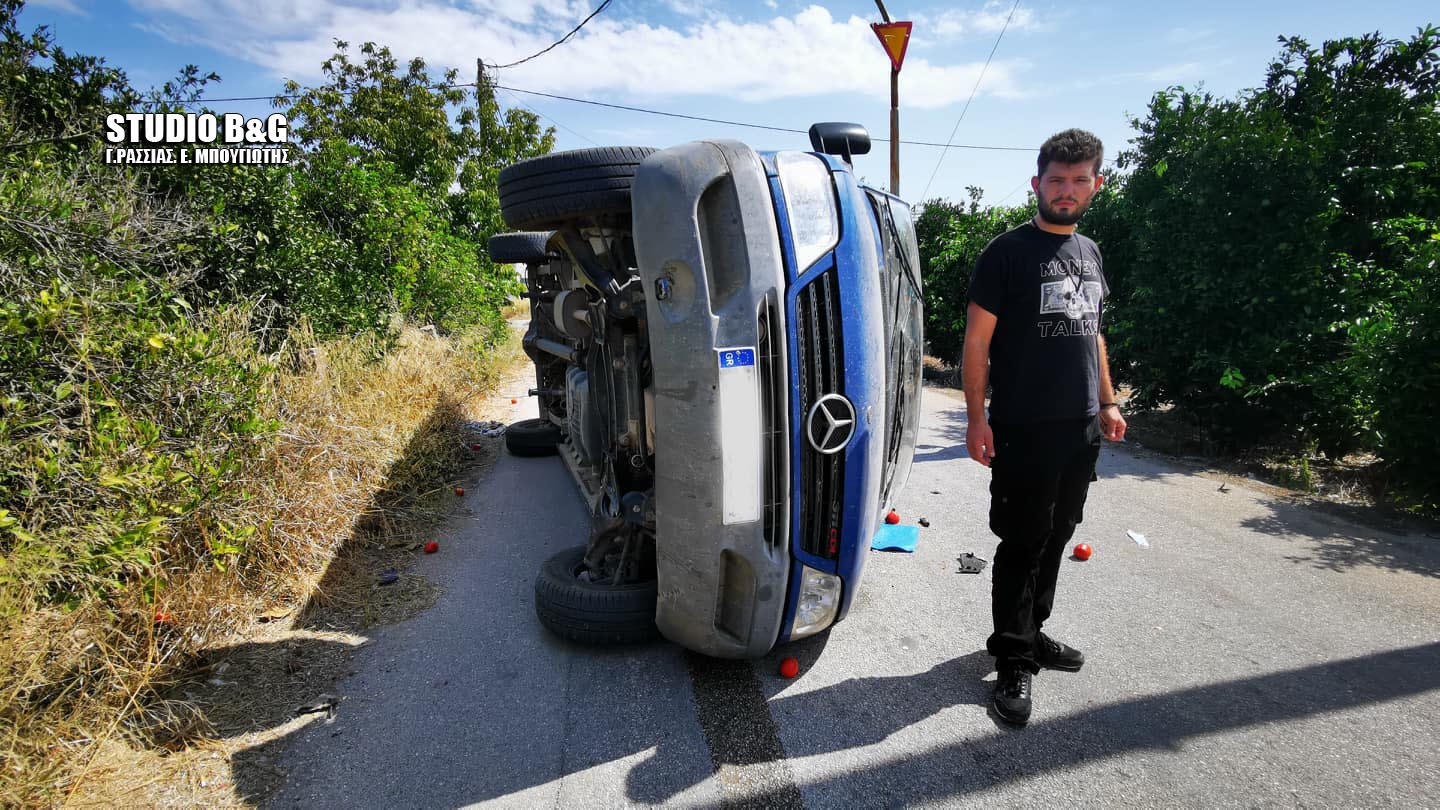 Κάτω από αδιευκρίνιστες ακόμα συνθήκες δυο αυτοκίνητα, ένα ΙΧ και ένα φορτηγό κλειστού τύπου συγκρούστηκαν στην επαρχιακή οδό από Αγία Τριάδα προς Πλατανίτη στον Δήμο Ναυπλιέων στη διασταύρωση Αγίας Τριάδας – Ανυφίου και Πουλακίδας – Ηραίου, με αποτέλεσμα να ανατραπεί το φορτηγό όχημα στη μέση του δρόμου.